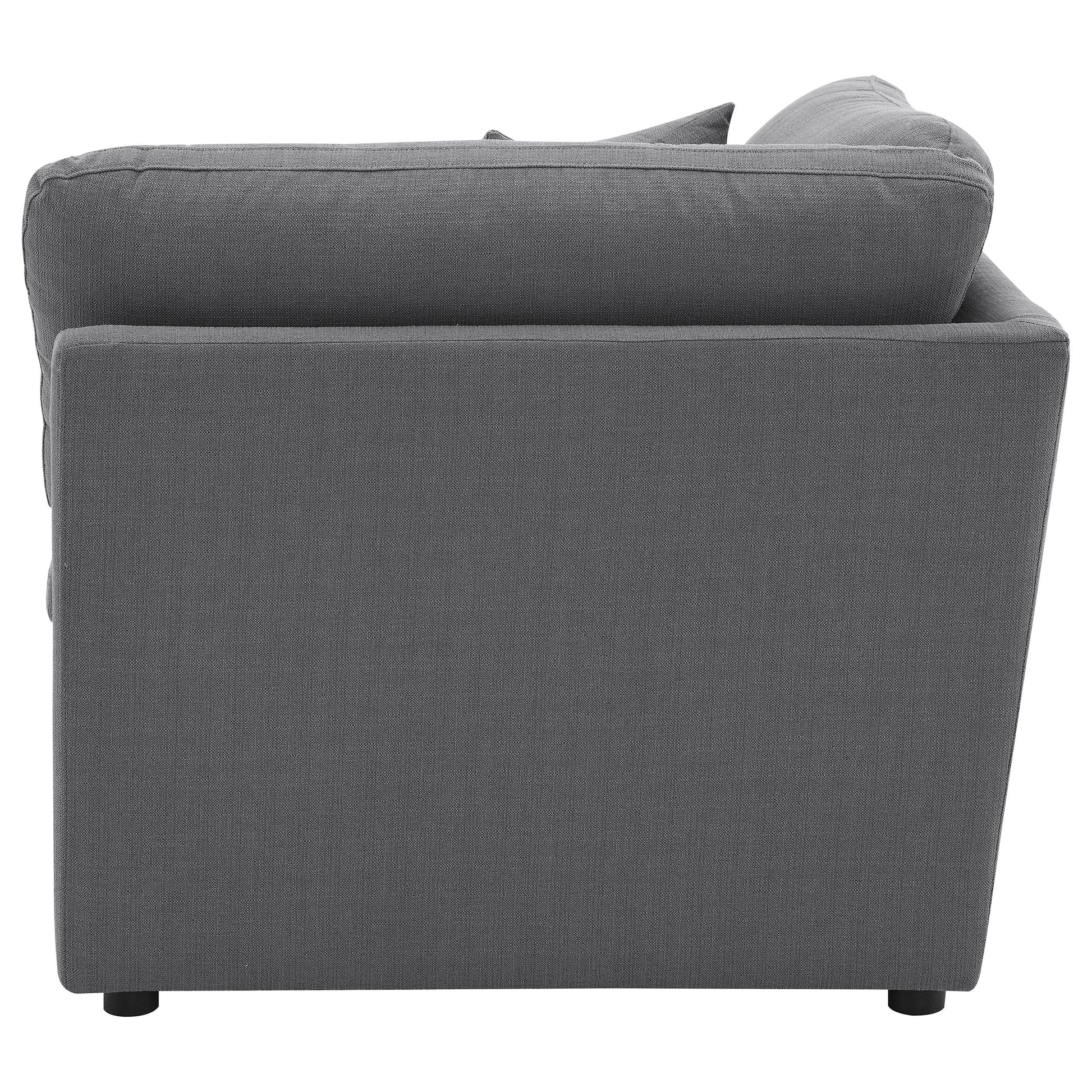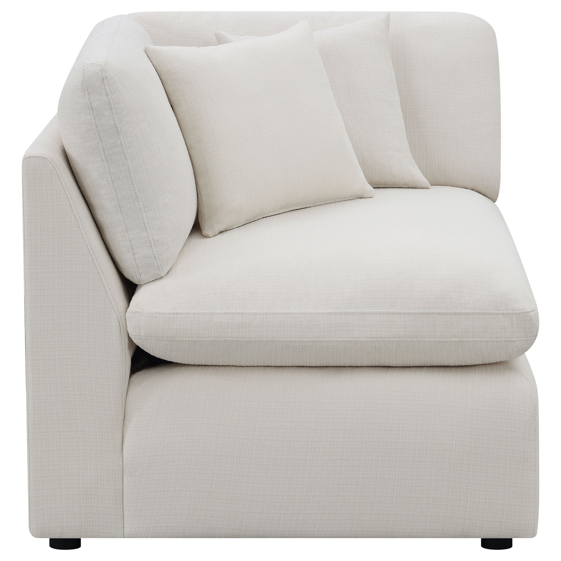 Relax on the cushioned comfort of this well-designed corner for the den or living room. Upholstered in linen-like, it's crafted with a plush seat and back for long-lasting comfort. It also features tailored handsome topstitching. You'll also love that the treated fabric easily repels water and moisture so you can quickly wipe up spills before they soak in. It's the perfect corner to add to any modular sectional.