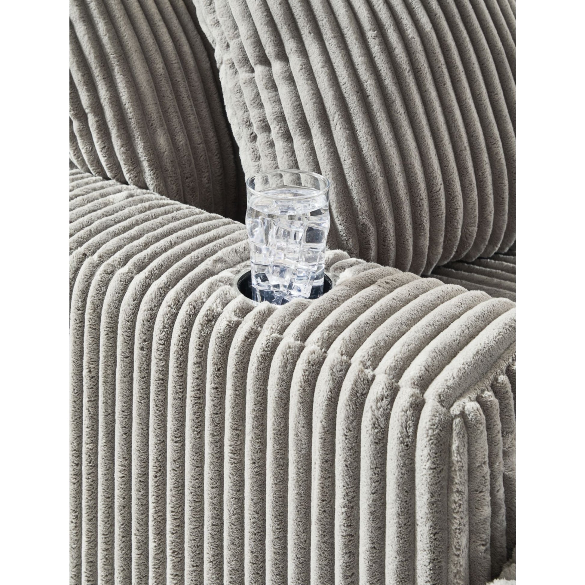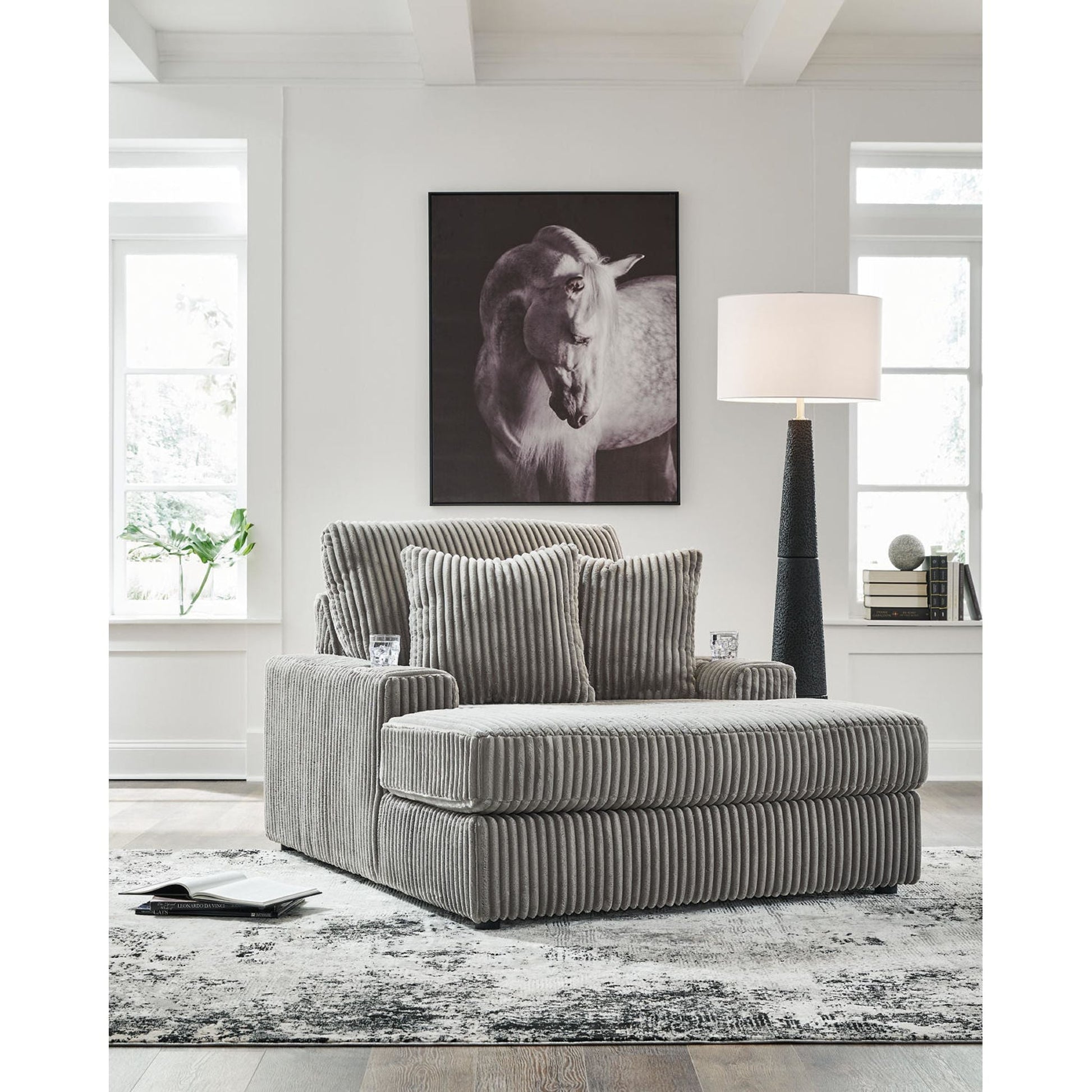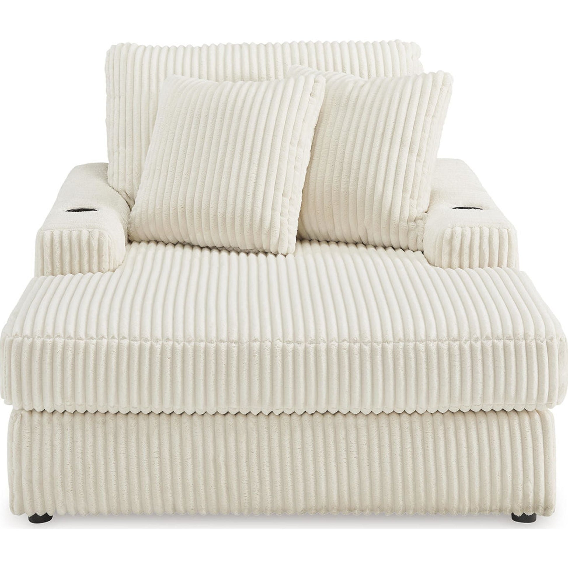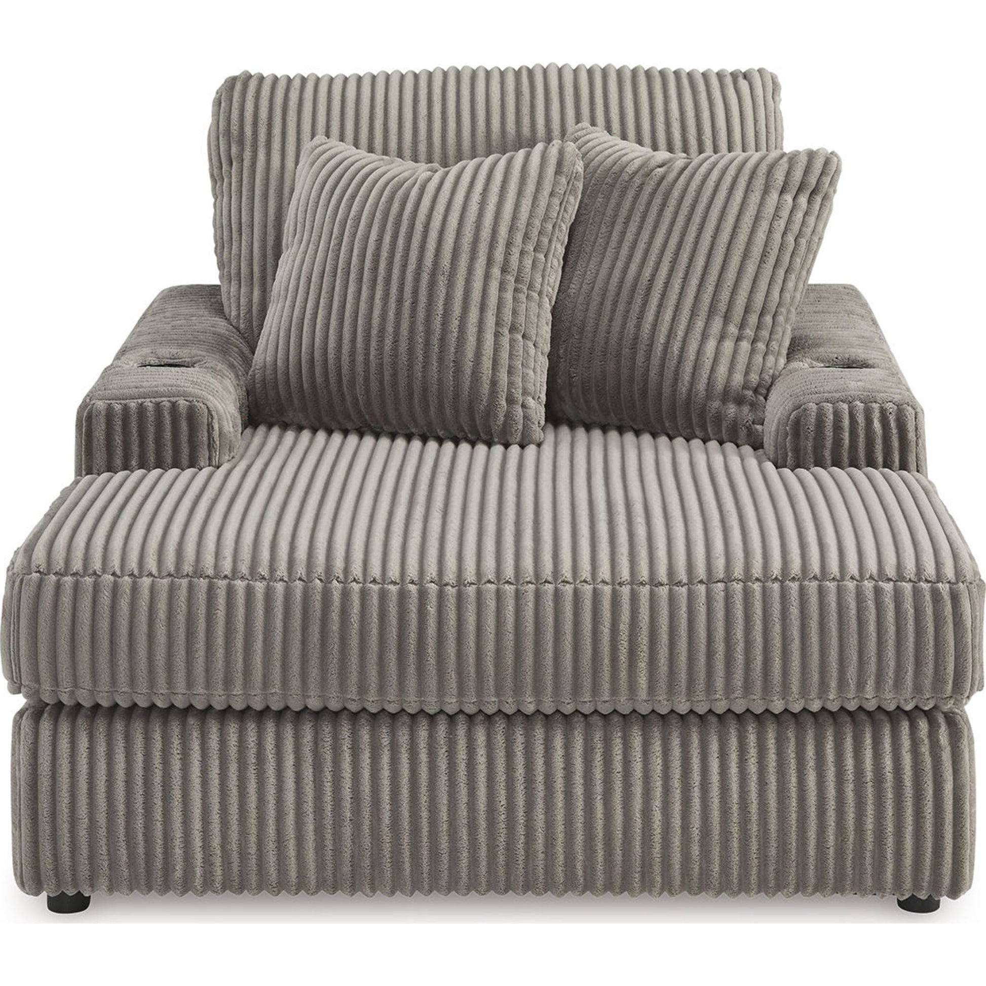 Plush and posh. Showcase your eye for on-trend texture with the statement-making cord upholstery of the Lindyn chaise. Its stunningly soft fabric entices in a warm neutral hue, complementing contemporary color palettes. Sink into the cushions and plan to stay a while—this cozy oversized chaise highlights your high-end approach to comfort and style.