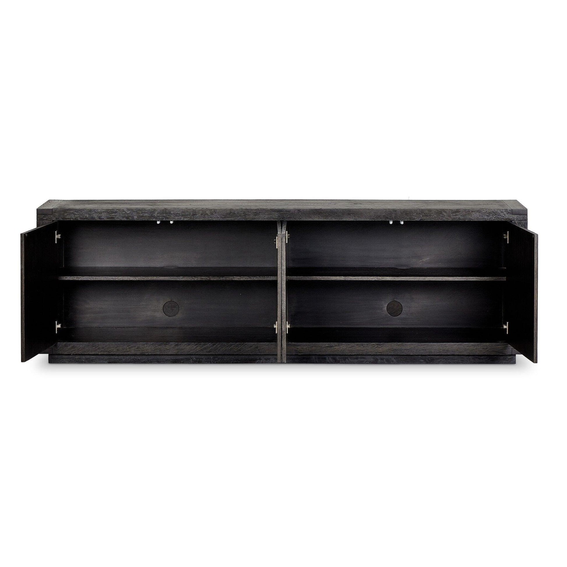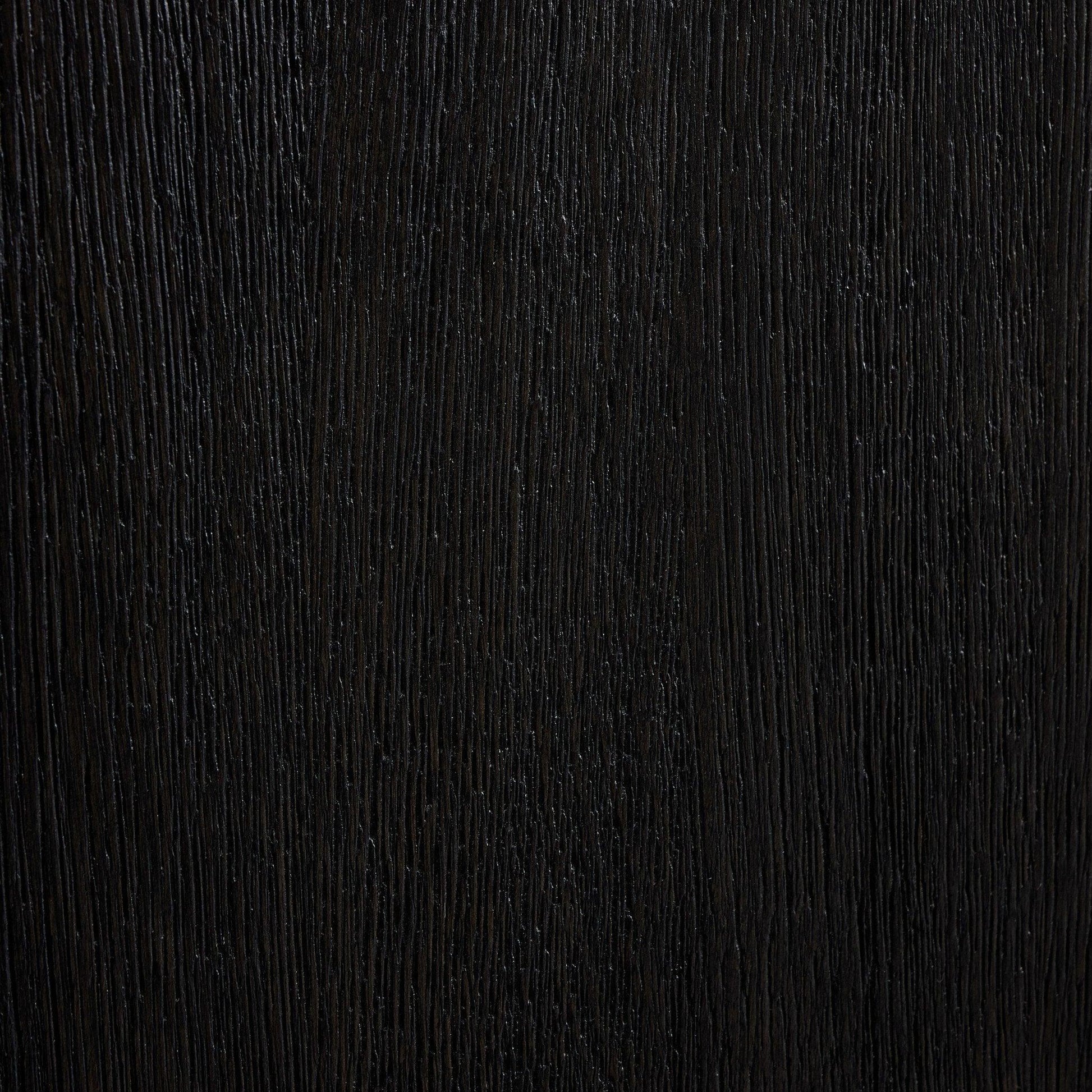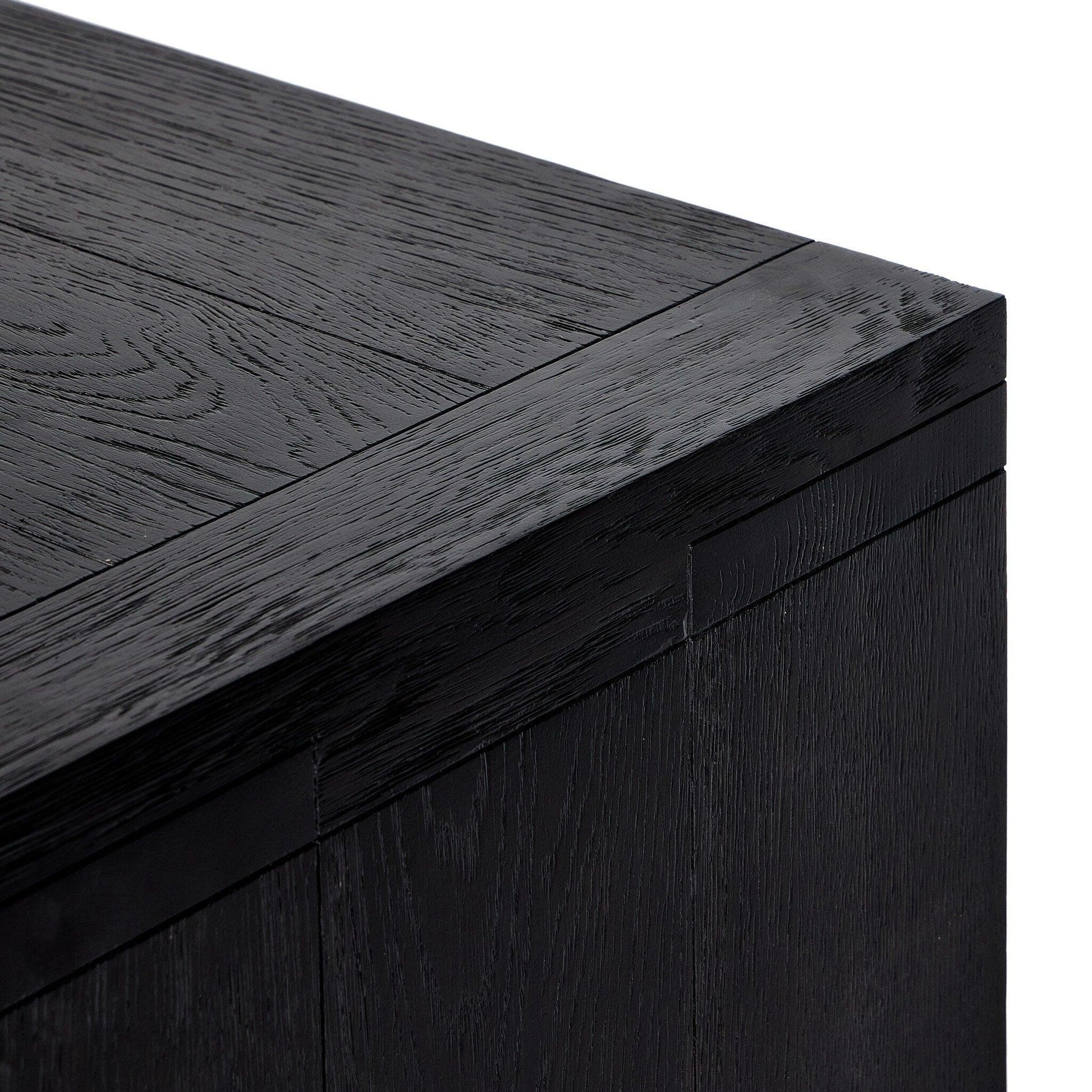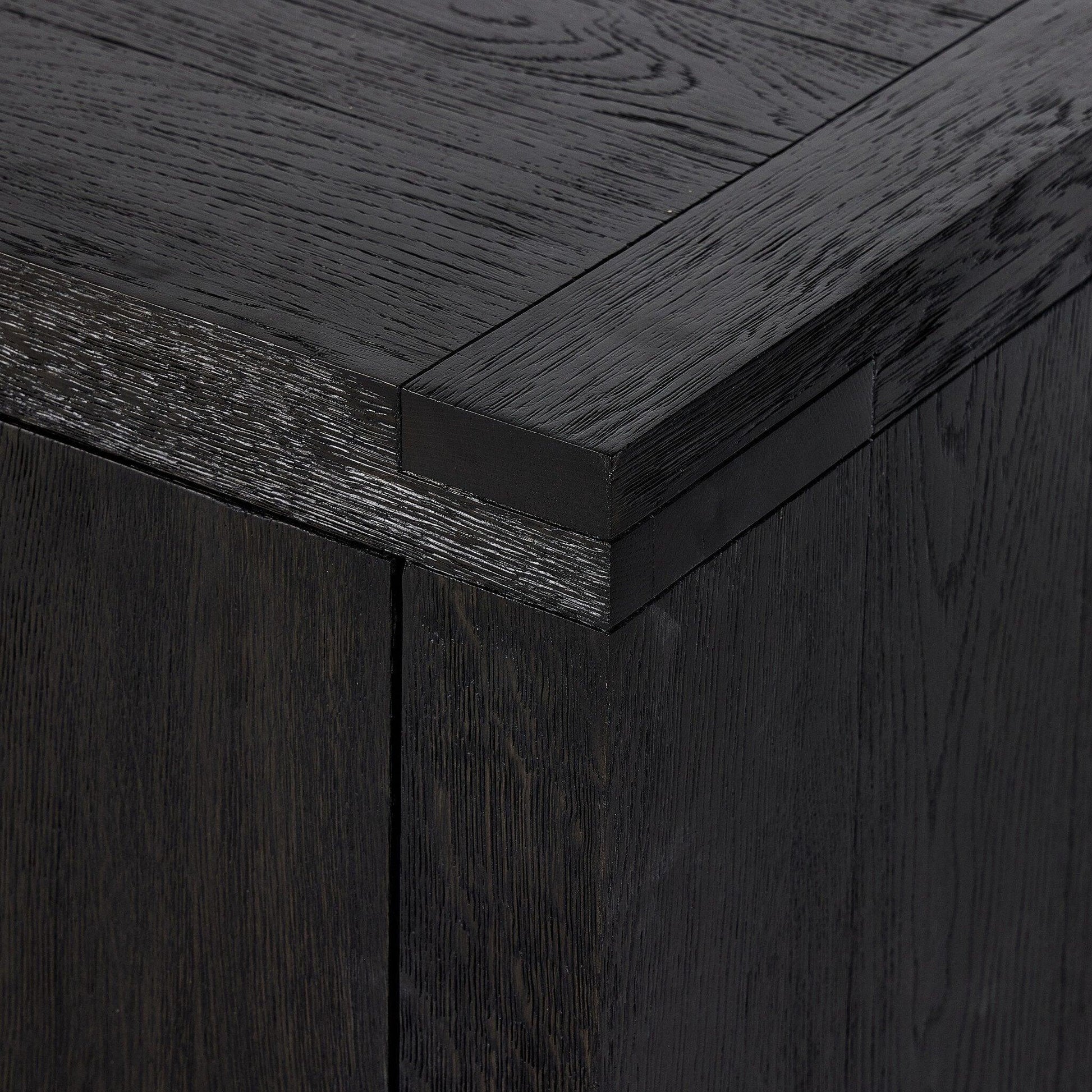 Black-finished oak shapes a streamlined box-style sideboard with lap joint corners for a detail-driven touch.